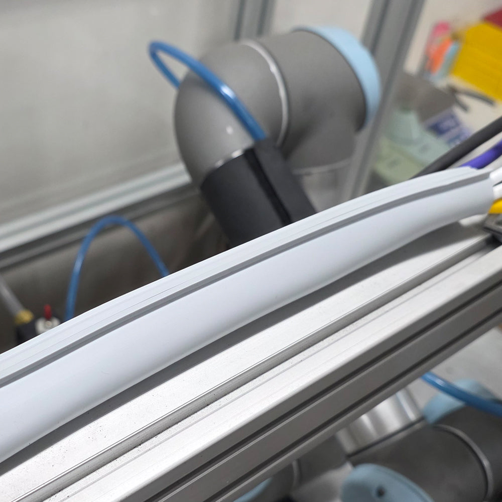 Zip-On (FIT) comes in several diameters and size configurations compatible with the most common slotted framing systems—including Bosch Rexroth, 80/20, and T-Slots. Choose the size that matches your rail, snap it in, and you’re done—a clean, protected cable path that looks as good as it performs.